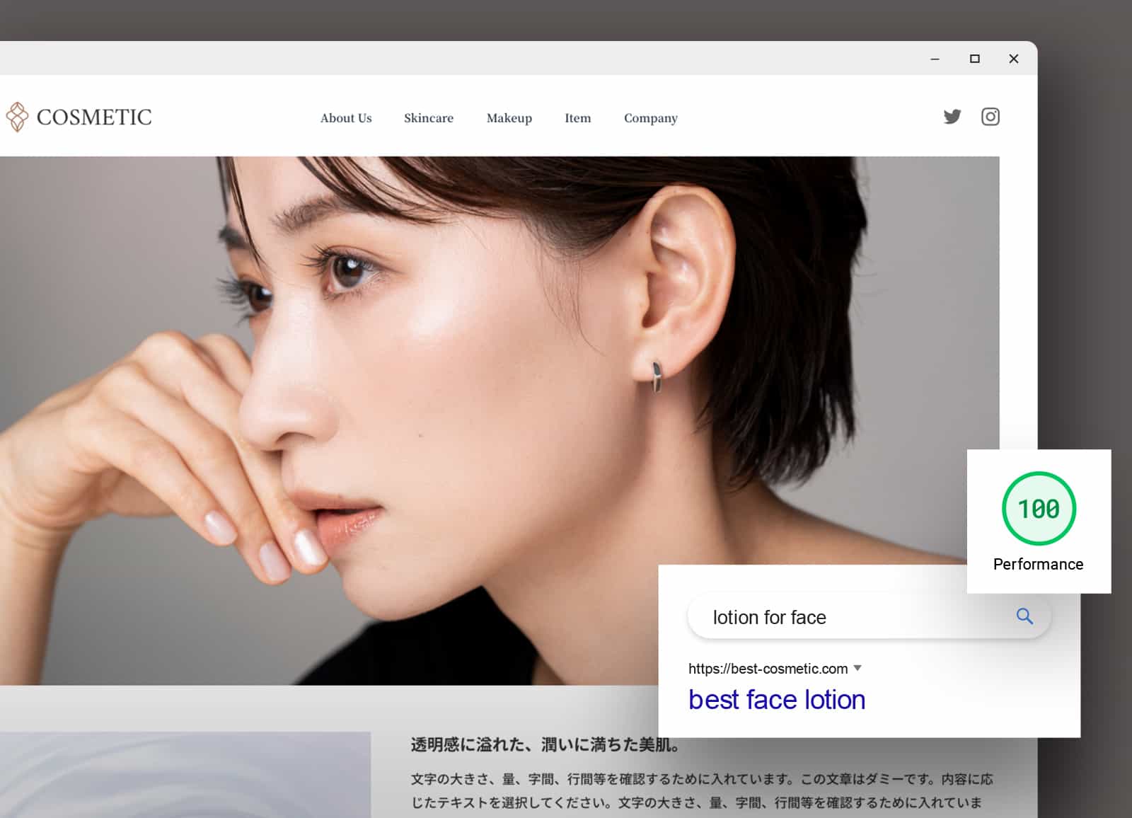 例えばホームページの表示を高速化するためには、画像・CSSの遅延ロードやGZIP圧縮、AMPへの対応、次世代フォーマット(WebP)形式の画像出力といった施策が挙げられます。