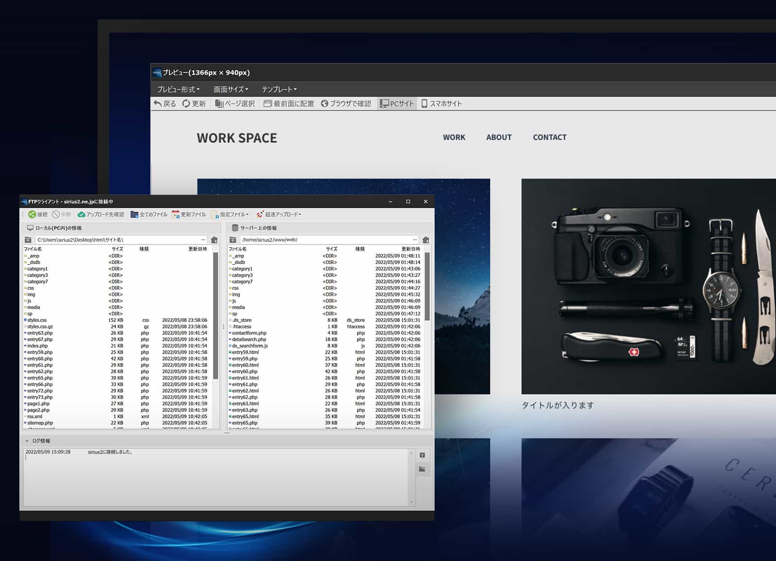 SIRIUS2では標準でホームページのアップロード機能を備えていますが、アルゴリズムの最適化を行うことでアップロード速度が向上しました。